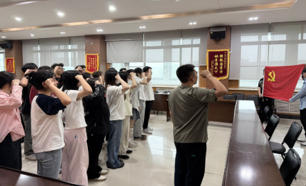 毕业生党员们庄严地举起右手,重温入党誓词。