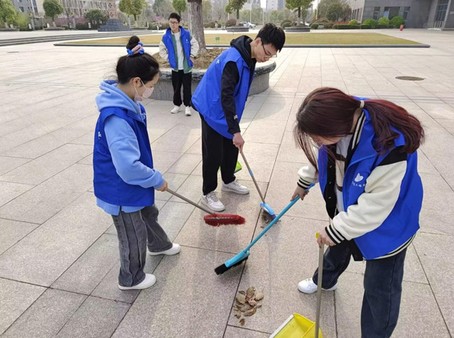 开展“学习雷锋精神,树立时代风范”校园卫生清扫活动。3月15日下午,30多名志愿者在校园开展“学习雷锋精神,树立时代风范”校园卫生清扫活动。志愿者们手拿拖把、扫帚等打扫工具,走进广场、草坪、湖边,清扫地面,捡起垃圾,将纸箱、塑料瓶送给环卫工人回收利用。大家还对垃圾分类要求做了宣传。本次活动既让大家上了一堂生动的劳动实践课,又让大家再一次体验了志愿服务的快乐。