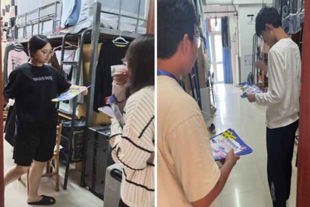 bevictor伟德官网员工会生活部制作了多份公寓安全教育相关材料,积极走访宿舍进行宣传,同时张贴在公寓区宣传处。本活动收到了广老员工的积极响应,不少同学主动前往横幅处签名。