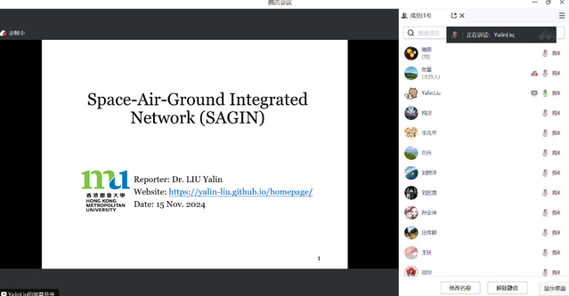 香港都会大学的Yalin Liu副研究员带来了题为“Space-Air-Ground Integrated Networks”的学术分享。报告聚焦天地一体化网络的架构与技术特点,详细阐述了如何通过整合地面设备、空中飞行器和卫星构建全球范围的无缝通信网络。Dr. Liu结合自身研究,介绍了系统建模与性能优化的最新成果,并分析了实现该技术过程中需要解决的挑战。她的讲解深入浅出,为听众展现了未来通信网络的广阔图景。