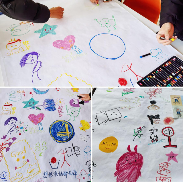 活动现场,同学们手持画笔,在白色画布上或泼洒斑斓色块,或勾勒线条,将焦虑、期待、喜悦等复杂情绪转化为具象的艺术表达。有的同学画出自己喜爱的动物,有的同学描绘了与朋友之间的深厚情谊,有的同学用太阳、云朵等天气元素表达自己的心情。一幅幅色彩斑斓的作品,不仅展现了同学们的创造力和想象力,更折射出他们内心的情感世界。许多同学表示,在涂鸦的过程中,他们感受到了内心的平静和愉悦,压力得到了有效缓解。